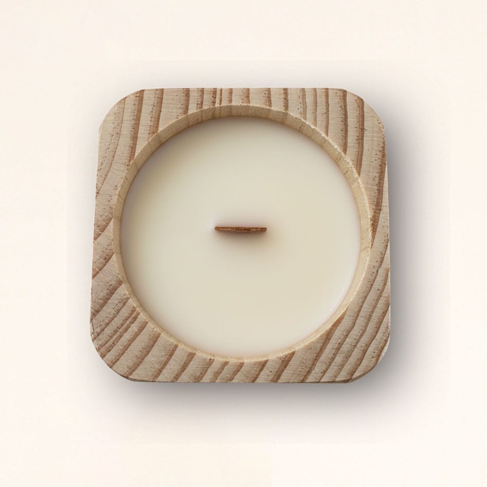 Con su mecha de madera crepitante y su envase de madera tan bonito, queda bien en cualquier rincón.